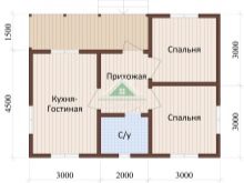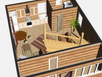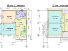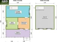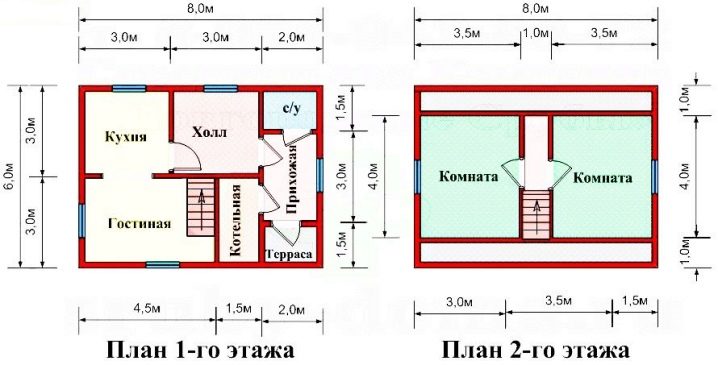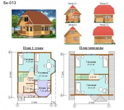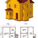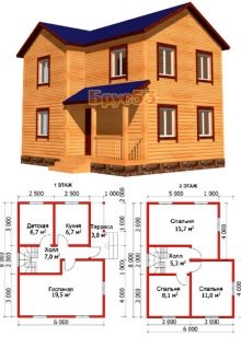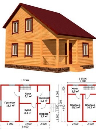 Ако в къщата се планира кухня-хол, често къща 6х8 се изгражда с двуетажна. Тогава за нея можете да дадете например 25 м2, за спалня – 15 м2 и за баня – 8 м2.