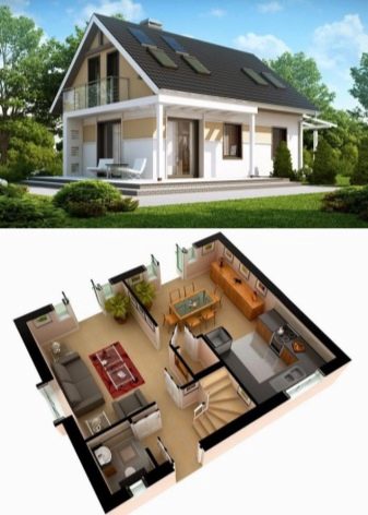 Двуетажната къща има балкон и освен това не един. Всяка от стаите, включително хола, може да придобие собствен балкон. Триетажна къща, заемаща 48 м2, понякога се заменя с двуетажен проект с мазе. Факт е, че изграждането на сутеренния етаж се оказва много по-евтино от изграждането на пълноценен етаж над първия. В допълнение, гараж, работилница и помпена станция са разположени в мазето (кладенецът излиза на повърхността).