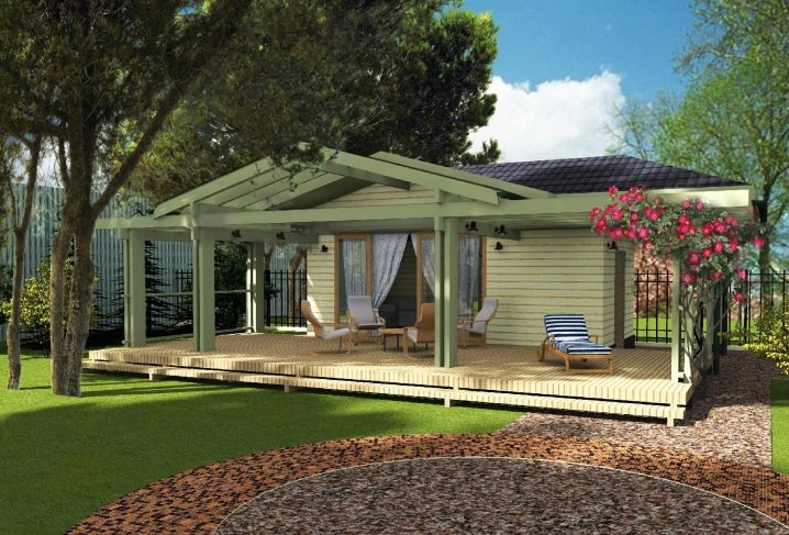 Къща 6х8 може да има малка тераса. Препоръчително е да комбинирате с него хол или една от спалните, чиито прозорци биха гледали например към градината или зеленчуковата градина на мястото. В някои проекти верандата е комбинирана с терасата – или и двете помещения съществуват едно до друго.