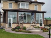 Също толкова важно е всички елементи да се впишат в цялостния дизайн на фасадата и зоната пред къщата. Стълбище, парапети, саксии с цветя, допълнително остъкляване и осветление – всички са избрани предварително в същия стил.