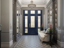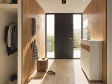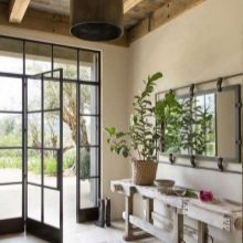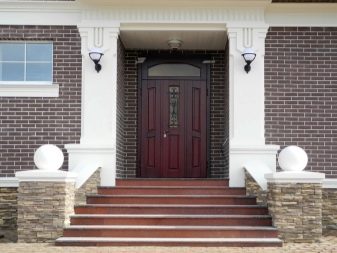 В частните къщи външният и вътрешният дизайн на входа и пространствата около него се поддържат в същия стил, но не винаги. Зависи от дизайна на фасадата и финала на коридора. Често се избират различни опции за дизайн, но се препоръчва да не се прави остър контраст между декорацията на входната група отвън и отвътре..