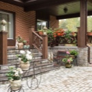 За да придадат на верандата оригиналност и естественост, често се засаждат растения: храсти и цветя. Опциите за ландшафтен дизайн зависят от района близо до входа, възможностите и вкуса на собственика. Жив плет, цветни лехи с различни размери, разположени близо до стъпалата, веранда с вечнозелен бръшлян – специална композиция е подходяща за всеки. Декоративните камъчета или многоцветните камъни в комбинация с малки храсти пред вратата изглеждат красиви.