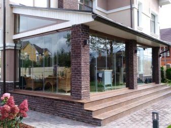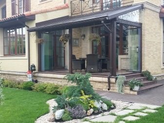 Важно е такива проекти да се координират с общата архитектура на сградата.. Подходящ за селски къщи в стила на минимализма, където често се използват метал и пластмаса. Идеален за остъклена веранда.