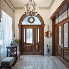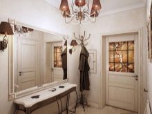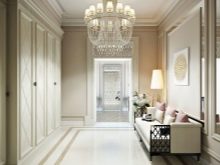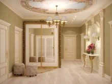 В коридора в класически стил се използва дървена врата, често със стъклени вложки.. Материали – ламинат или MDF. Традиционните по -тъмни нюанси в неокласическата версия се заменят с по -светли тонове.