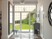 Пълните стъклени врати са подходящи за малки преддверия. Такива дизайни са много популярни сред британците. Малка стая между улицата и коридора ще затопли, задържа излишната влага и мръсотия. Тук можете да подредите мебели и стайни растения – получавате миниатюрна зимна градина.