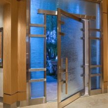 Стъклените секции могат да бъдат непрозрачни и прозрачни, разположени в крилото на вратата или отстрани на вратата.