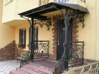 Комплектът може да включва не само ковани парапети и стъпала, но и пейки, сенник, фенер над входа. Цялата композиция или отделни парчета коване могат да бъдат направени във винтидж и модерни стилове. Често кованите покрития се комбинират с камък и пластмаса..