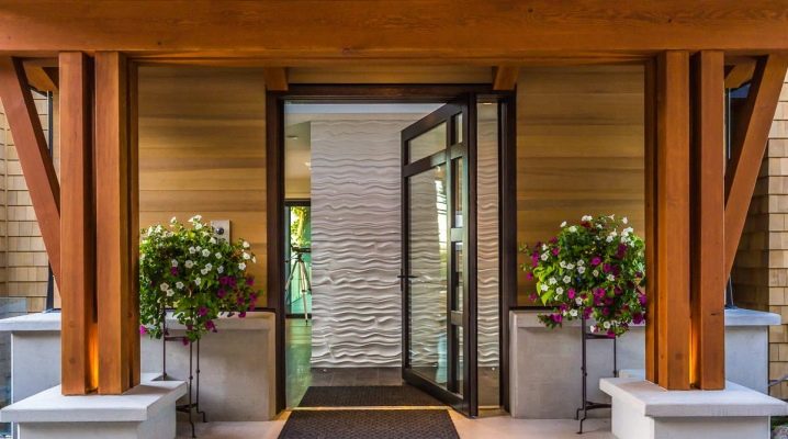 Когато създават оригинален дизайнерски проект, те се стремят да хармонизират общия стил на входа с дизайна на фасадата и околния пейзаж. Зоната в непосредствена близост до вратата може да заема малко пространство или голяма площ. Входната група може да включва платформа с веранда или само елегантна веранда, прикрепена отстрани на фасадата. Тук е важно правилно да се впише всеки детайл в една -единствена композиция, да бъде възможно най -удобна и функционална..