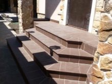 По -здрави и надеждни плочки с качествена и издръжлива повърхност. Ако трябва да украсите верандата с висококачествен материал против хлъзгане и устойчив на замръзване, тогава порцелановият камък е идеален.. Това е покритие, което е идеално за външна употреба, така че завършването на стълбите с него ще бъде правилното решение..