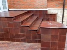 - Сила на огъване. Нивото на гъвкавост на плочката ще зависи от този параметър. Устойчивите на замръзване и нехлъзгащи се капаци на верандата, ако не са изработени от каучук, обикновено имат много малък коефициент. Но каучуковите образци имат почти сто процента якост на огъване, така че дори полукръгли стъпала могат безопасно да бъдат подрязани с тях..