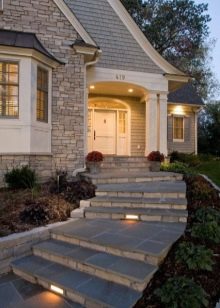Потребителите, които искат да украсят верандата по скъп и аристократичен начин, често избират този тип плочки за входната зона. Естественият камък е най -здравият, издръжлив и издръжлив материал, но в същото време има много висока цена. За да украси верандата с камък, потребителят ще трябва да се подготви за сериозни разходи..