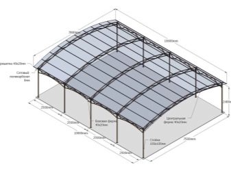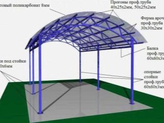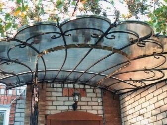 Основната част от конструкцията може да бъде направена от самия поликарбонат. Но ако рамката е направена под широк козирка, ще е необходима допълнителна армировка с профил или щанга в напречната равнина. За да се изгради всичко правилно и надеждно, е необходимо да се спазва пролуката между укрепващите ребра – най -малко 0,5 m. Отделни елементи могат да бъдат изработени от дърво или профилиран лист. Но това изисква внимателна механична и конструктивна координация на частите помежду си, тоест внимателни изчисления.