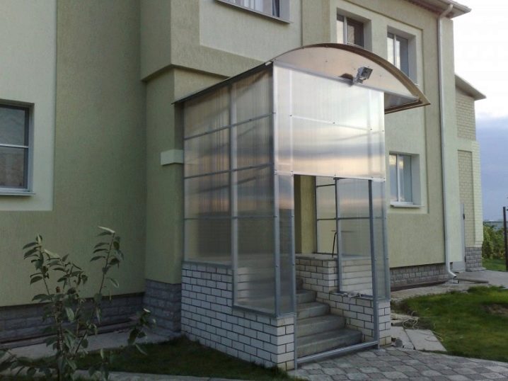 Но в частна къща можете да видите други материали, на първо място, монолитен поликарбонат.