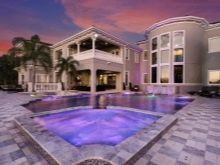 - Огромна еко къща във Флорида на стойност 26,5 милиона долара той се отличава с необичайно оборудване, има голям брой слънчеви панели, басейнът е оборудван със система за събиране на дъждовна вода. В строителството е използвано възстановено дърво, благодарение на което е било възможно да се предотврати разрушаването на 40 хиляди квадратни метра. м гори. Интересни характеристики на къщата са стъклени стелажи в отделно помещение за съхранение на вино и аквариум с обем 7,5 хиляди литра..