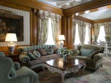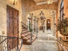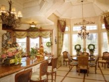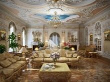 Вътре имението трябва да бъде декорирано в същия стил. Това се отнася за хола, кухнята и други стаи. Тъй като отличителният белег на голямо имение е луксът, тогава стиловете, които се характеризират с използването на скъпи материали, изобилие от различни архитектурни детайли и изключителни мебели, ще бъдат напълно подходящи.. И те включват определени стилове.