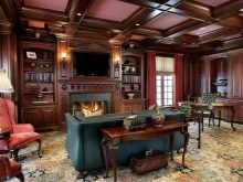 - Английски. По -сдържан и строг вариант на дизайн, но вкус и стил се усещат във всеки малък детайл. Необходимостта от скъпи висококачествени мебели, тапицирани с естествени материали, е също толкова неоспорима, колкото наличието на камина, както и обширна библиотека. Характерна особеност е изобилието от дърво, което присъства в декорацията и мебелите..