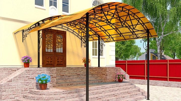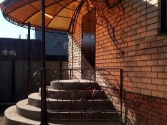 Коването изглежда много скъпо и изискано и затова е подходящо за къщи в класически стил. Поликарбонатът изглежда добре с дърво и ви позволява да създавате необичайни дъгообразни сенници.