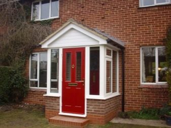 Разширението към самата къща изглежда различно. Това може да бъде ниска конструкция с няколко стъпала, разположена близо до къщи без мазе, или също толкова проста, но вече висока веранда с парапет.. Когато пространството близо до вратата остане отворено без никакви ограничения, то се превръща във вътрешен двор, но стените вече са характерни за верандата. Има и опция за тераса – открита голяма площ, оборудвана с парапети. Козирката може да бъде монолитна, тоест комбинирана със стената, или може да бъде разглобяема модулна конструкция.