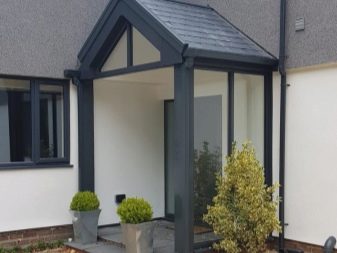 Пристройката към къщата може да има скатен или двускатен покрив. Наклоненият балдахин изглежда необичайно, но плоските конструкции се считат за доста скучни. Популярни са различни видове сферични и дъгообразни модели: например под формата на правилен или продълговат купол, както и арка. Разпространените също включват вдлъбната и права вариация, моделът “маркиз” и други..
