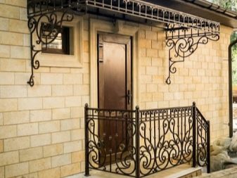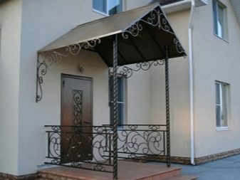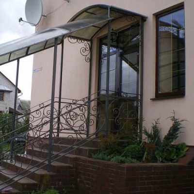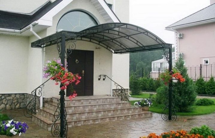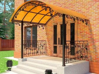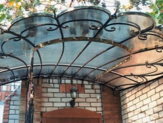 Коването изглежда много скъпо и изискано и затова е подходящо за къщи в класически стил. Поликарбонатът изглежда добре с дърво и ви позволява да създавате необичайни дъгообразни сенници.