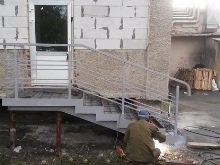 Между другото, обичайно е да се направи такъв дизайн ъглов. Това може да бъде малка странична веранда, водеща до авариен вход, или сглобяем модел със стълба и модулен сенник..