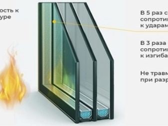- Подсилено стъкло. Особеността на материала е високата якост, която може да бъде постигната чрез използването на подсилващ филм или специални метални нишки.