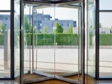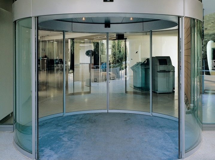 - Въртящ се. Дизайнът прилича на въртележка. Системата има четири сектора, всеки от които е разделен от неразделна стъклена преграда. В този случай преградите се въртят около оста си. Въртящите се врати се използват за създаване на необходимия образ на сградата..
