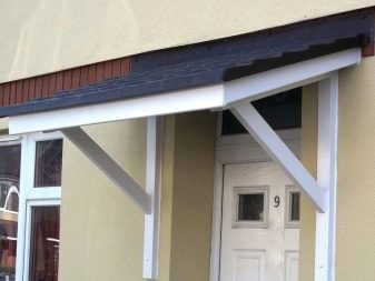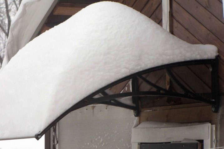 На първо място, сенникът на фронтона над входа трябва да издържа на определено количество сняг.. Този параметър се договаря с организацията, участваща в инсталирането на такива конструкции. Или, ако решите сами да направите подобрението, ще трябва да се запознаете с физическите и математическите формули за изчисляване на теглото. Също така опорите за козирката трябва да поддържат самата козирка. Тоест те трябва да бъдат инсталирани въз основа на избрания материал за сенника..
