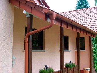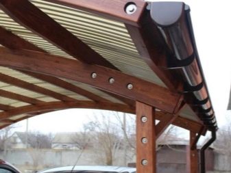 За да се увеличи стабилността на конструкцията, по -добре е да направите покрива от всеки друг материал, както е споменато по -горе.. Една от бюджетните опции ще бъде поцинкована стоманена ламарина. От него е направена дренажна система, за това е необходимо да се построят улуци, през които ще се оттича водата..