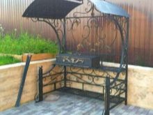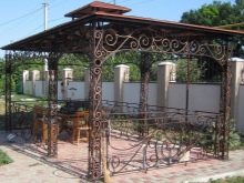 Не трябва да има твърде много елементи: това ще съсипе дизайна. Ако в магазина няма огънати елементи, можете да ги направите сами, като използвате метален прът със сечение 10х10 мм. Скелетът на рамката е направен от оформена тръба.