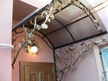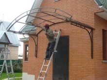 Изработката на кован козирка започва със скица. За да го направите сами, трябва да имате умения за заваряване.. На първо място, те се определят с формата и размера на продукта. Козирката над входа на къщата трябва да покрива верандата, в хармония с предната част на сградата.