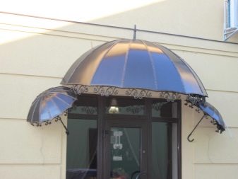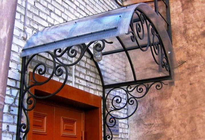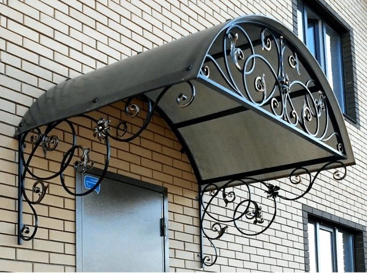 Формите на ковани сенници могат да бъдат прави и ъглови. Линейните опции се считат за най -прости. Понякога това са плоски козирки с минимален обем на коване. Освен това, формата на сенниците над входната врата може да бъде куполна или сводеста.