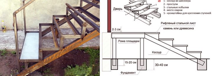 За тази цел е по -добре да направите стъпалата от стоманен лист с прорези, можете да ги затворите за зимата със специални гумени основи, които не се страхуват от минусови температури..