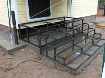 - След това можете да започнете да инсталирате и поправяте сайтовете.. Как ще стане това зависи от избрания материал. Ако е метал, за заваряването се използва заваряване, ако дървото е самонарезни винтове, традиционно се излива бетон, под платформата се поставя железен лист.