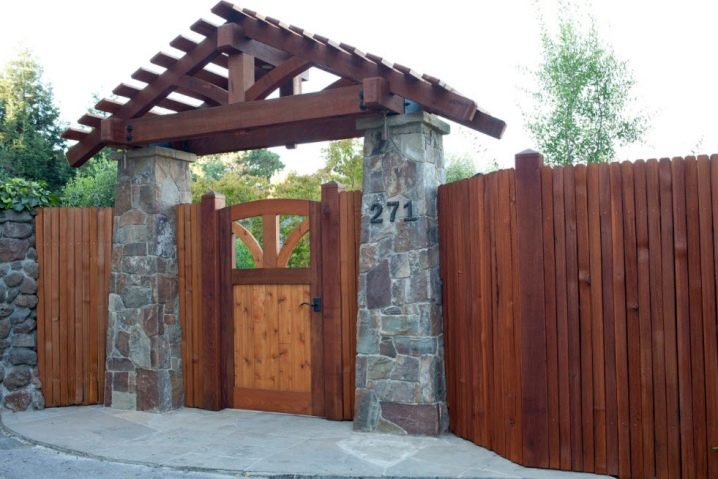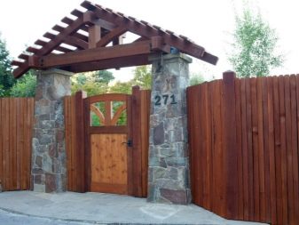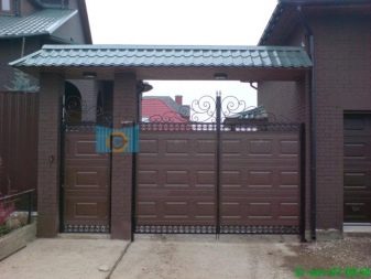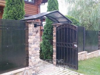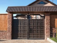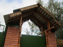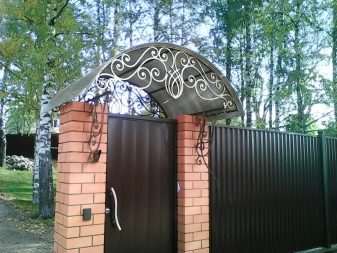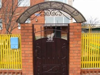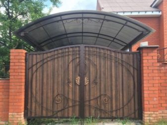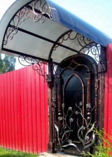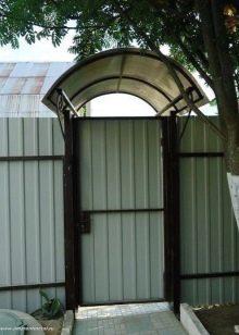 Ако изглежда, че декоративната страна преобладава, можете да помислите как ще изглежда портата на общия фон, какви са нюансите на оградата, портата и къщата като цяло, мястото може да бъде подчертано от козирката. Може би това ще бъде някакво „повикване“ с къщата и нейния покрив.