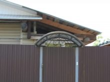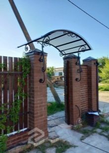 Други материали за козирката над портата в частна къща могат да бъдат както следва.