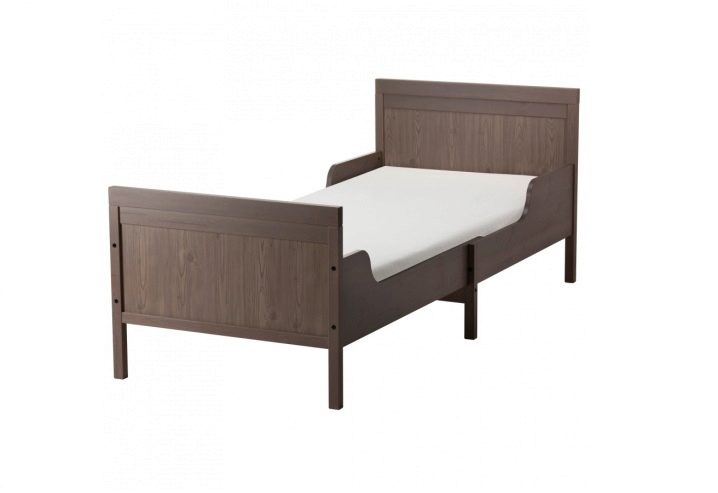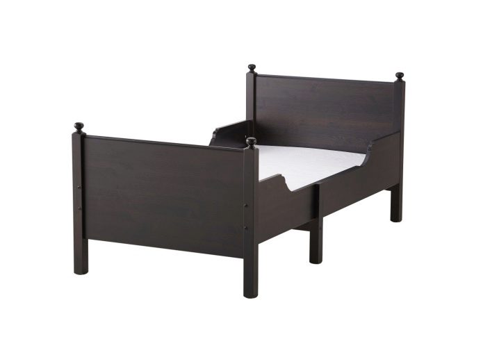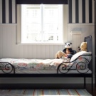 Универсален и популярен вариант в IKEA е стоманеното легло Minnen със заоблени ръбове и предпазни пропиленови крака. Днес той се предлага в актуализиран дизайн, регулируем по дължина и може да бъде черно-кафяв и бял. Довършването на страничните стени, под формата на слънчеви лъчи, ще добави красота и грация в стаята.