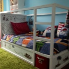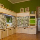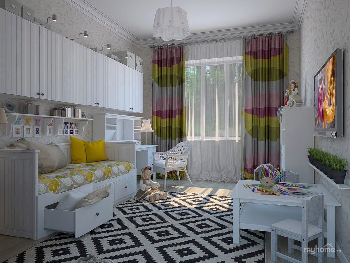 Надеждните мебели, системи за съхранение, стелажи и модули позволяват на детето да прекарва времето с удоволствие в стаята. Поредица от бели шкафове с ярки фасади в сини, розови, зелени цветове ще направят пространството уютно и хармонично. Естествените цветове на мебелите и богатите цветове на аксесоарите ще създадат детски комфорт.