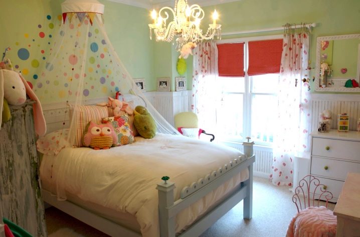 Наличието на балдахин или балдахин в стаята на стената или над леглото ще го превърне в уютно място за спане, игра или четене на книги..