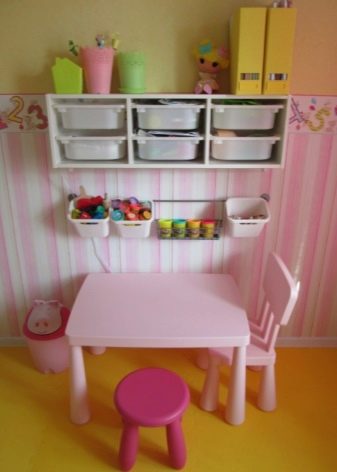 Ключовата идея тук е не само възможността да се настанят възможно най -много важни неща за учене и игра, но и да се поддържа перфектен ред в стаята..