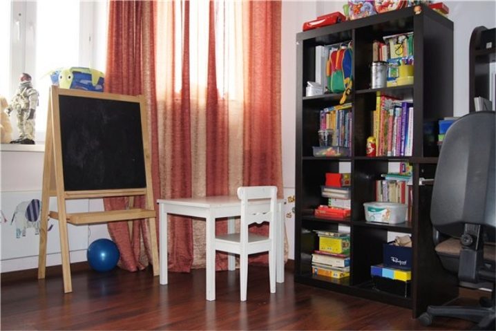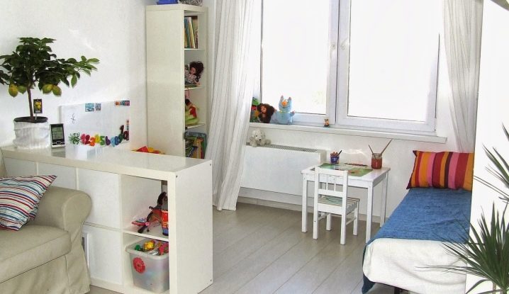 Това разделяне помага да се оборудва детска стая за момиче и за момче с ясно разделяне на цветовете..