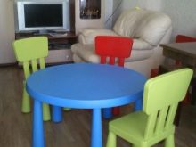 - Таблица “Mammut” с дължина 77 см, ширина 55 см и височина 48 см, изглежда е създадена за две деца. Трябва да се каже, че правоъгълникът във формата на масите се използва от компанията със забележима честота. Удобно е да поставяте играчки зад него при пиене на чай, както и да играете настолни игри, дори ако всяко дете има своя собствена игра на масата..