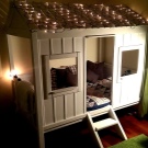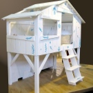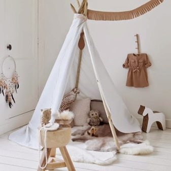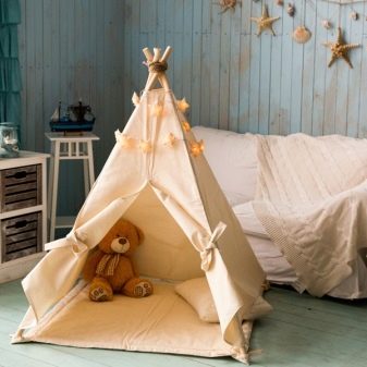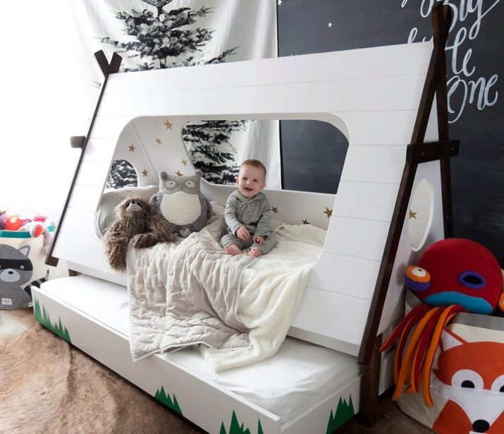 Най-малките деца на възраст 2-3 години, както и тези, които се страхуват от височини, които спят неспокойно и могат да паднат, или тези, които мечтаят за далечни страни, туристически пътувания и археологически експедиции, легло за хижа. Между другото, лесно е да се тълкува като индийски уигвам и като палатка на пътешественик. И ако драпериите на хижата са декорирани в източен стил, тя лесно може да се превърне в шатрата на султана или в стаите на царицата Шамахан..
