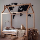 Между другото, точно такова легло за къща е най -лесно да се направи със собствените си ръце заедно с деца – основното е да изчислите правилно всичко предварително, да изберете висококачествени и безопасни материали и бои, да държите инструменти, деца и малки предмети един от друг и в резултат на това надеждно събирайте това, което заедно измисляте.