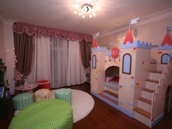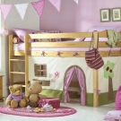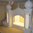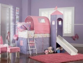Романтичните натури ще оценят детското вилно легло, подобно на принцесов дворец или рицарски замък. От миниатюрни кули с кули и знамена с любимия ви цвят можете да разгледате притежанията на играчките си и да размахвате кърпичката си на „принцовете“. Или заедно с приятели е шумно, забавно и по всякакъв начин успешно отблъсква атаките на „превъзходни вражески сили“. Или се оттеглете зад плътно прибраните завеси, включете малка крушка в игралната си стая и прочетете любимата си книга..