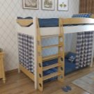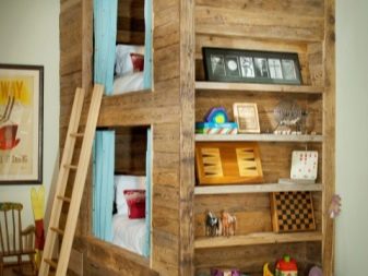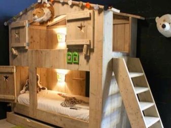 Без съмнение най -добрият вариант е легло за хижа, изработено от дърво: красиво, издръжливо и практично. А също и екологично чисти-ако се използват естествени восъчни импрегнации или нетоксични бои на водна основа при довършване на дървени повърхности (което обикновено е посочено в сертификата за качество на продукта). Надеждността на такава легла се осигурява от високата плътност на дървената структура на нейните конструкции, които са допълнително подсилени с метални пръти, вмъкнати вътре. Това позволява на всяко детско място за спане да издържа на значителни натоварвания – до 120 кг. Закопчалките за дървени легла в кабината обикновено са изработени от високоякостна стомана и са внимателно занитени, въпреки че се срещат и модели с фитинги от ковано желязо – когато дизайнът го изисква.