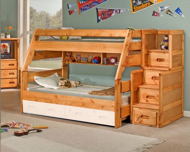 Тези видове дървесина са най -здравите и издръжливи, така че не можете да се притеснявате за безопасността на вашето дете. Единственият недостатък на двуетажно легло с диван от естествено дърво е неговата значителна цена. Но това напълно оправдава качеството на мебелите..