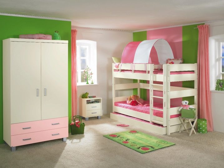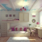Ако има две момичета, значи имате по -трудна задача. Тук трябва да се харесате на два знака. В този случай трябва да се съсредоточите върху спокойни пастелни цветове и всяко място за спане вече може да бъде допълнено от любимите цветове на всеки от обитателите на стаята..
