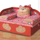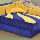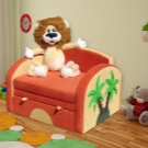 - Звяри. Моделите ще се вписват перфектно в стаята на момичето. Например диван във формата на куче с дълги уши или крокодил. Устата на “животното” се отваря и осигурява удобно отделение за съхранение. Често плюшени глави играчки се поставят в ъгъла на дивана, действайки като вид възглавница..