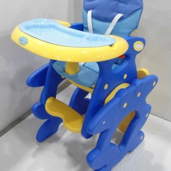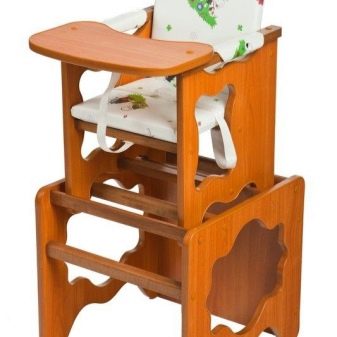 - Някои модели столчета за хранене се трансформират в маса с бюро, което може да се използва не само в процеса на хранене, но и за игрите на предучилищна възраст или заниманията на ученика в началното училище.